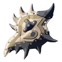 This Lizal shield is adorned with several metal shells as a means of reinforcement. Its defensive capabilities are high, but its weight requires a skilled soldier to bear.